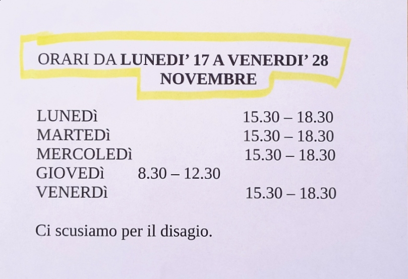 Lunedì: – 14:30–18:30